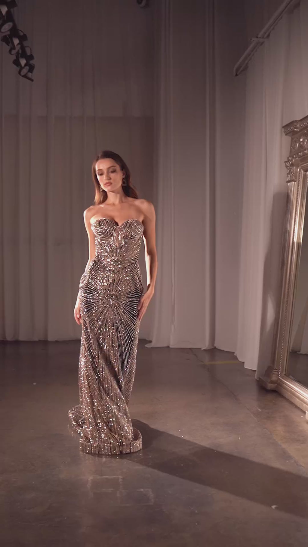STRAPLESS GLITTER EMBELLISHED GOWN- J871